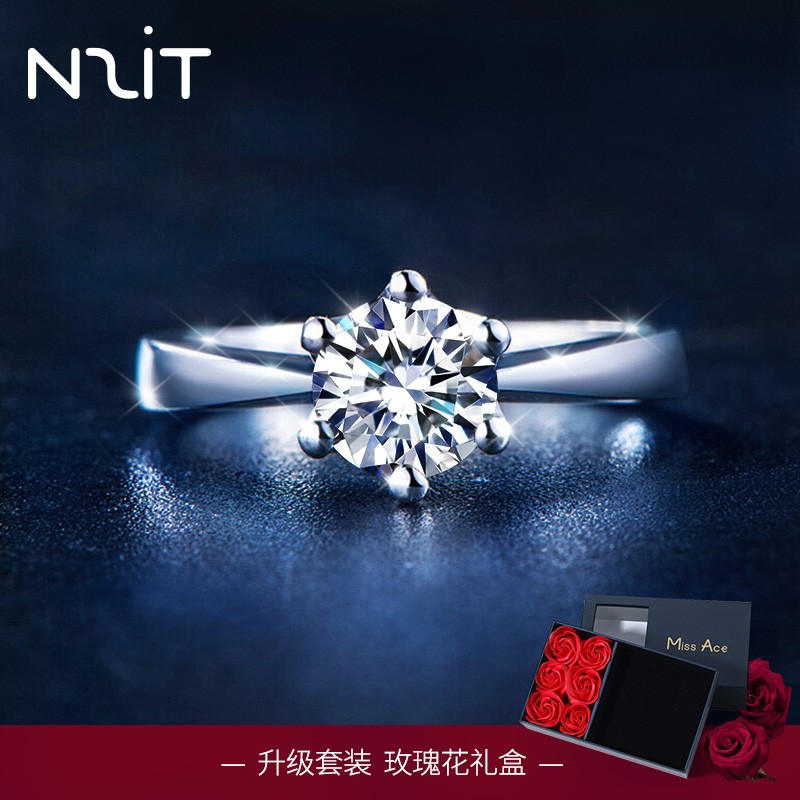 N2IT经典六爪女戒仿钻石戒指约1克拉莫桑石戒指镀18K金S925活口银戒rc A款六爪约1克拉+玫瑰花礼盒…
